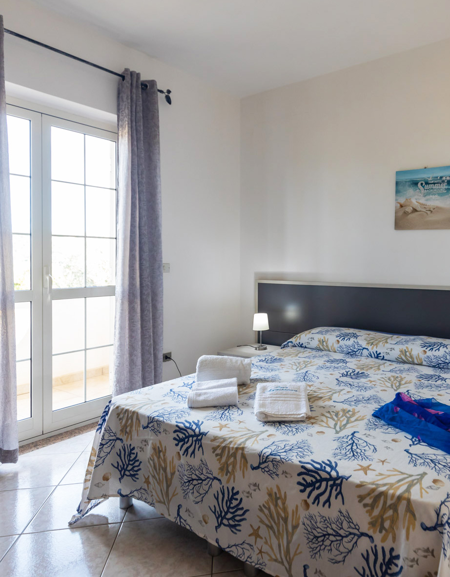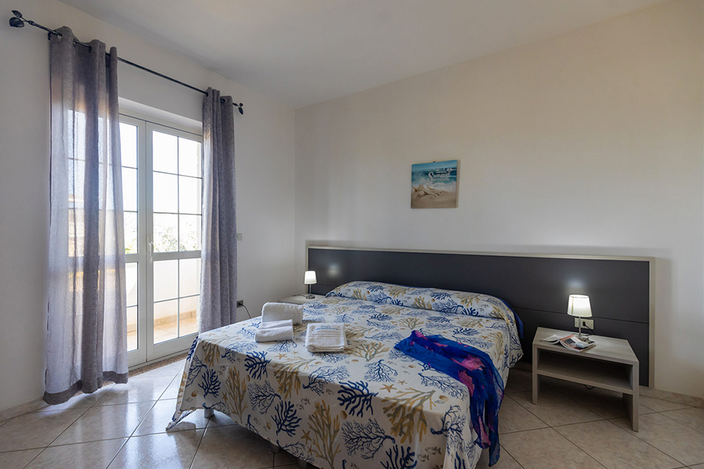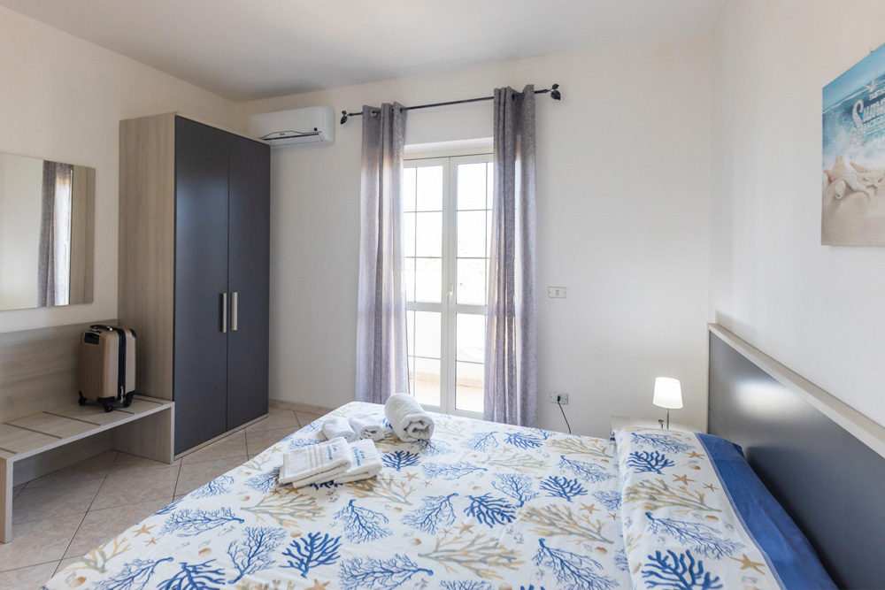 Appartamenti arredati con design classico contemporaneo, dispongono di camera da letto matrimoniale con la possibilità di aggiungere un lettino in più, cucina abitabile con adeguati accessori, bagno privato con box doccia attrezzato di biancheria e phone.